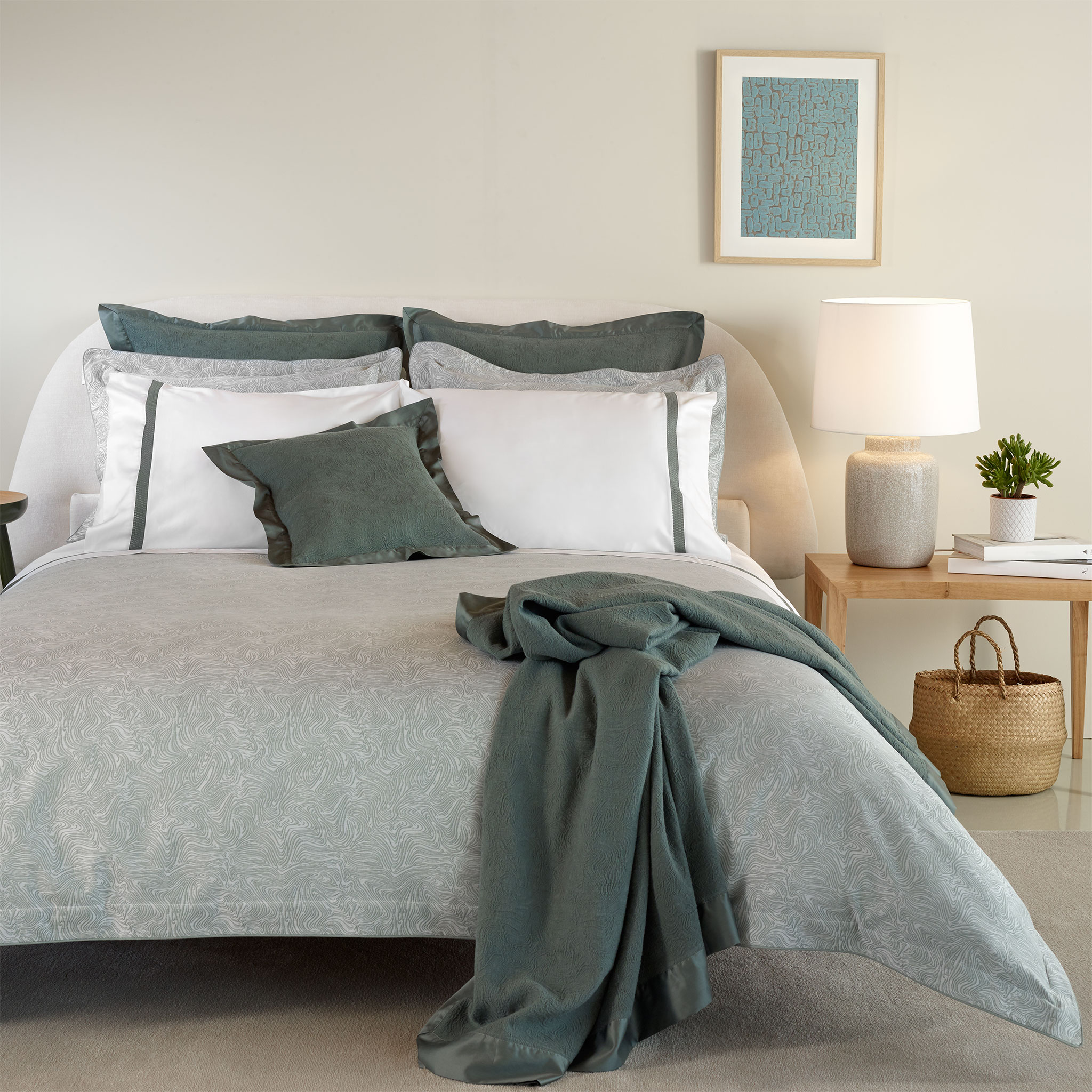 Wzór CARAVELA odzwierciedla fale oceanu, po których portugalscy marynarze żeglowali przez wieki w epoce odkryć. Ta bogata historia została teraz przeniesiona na wyrafinowany zestaw, który powinien wypełnić każdą szafę z pościelą.